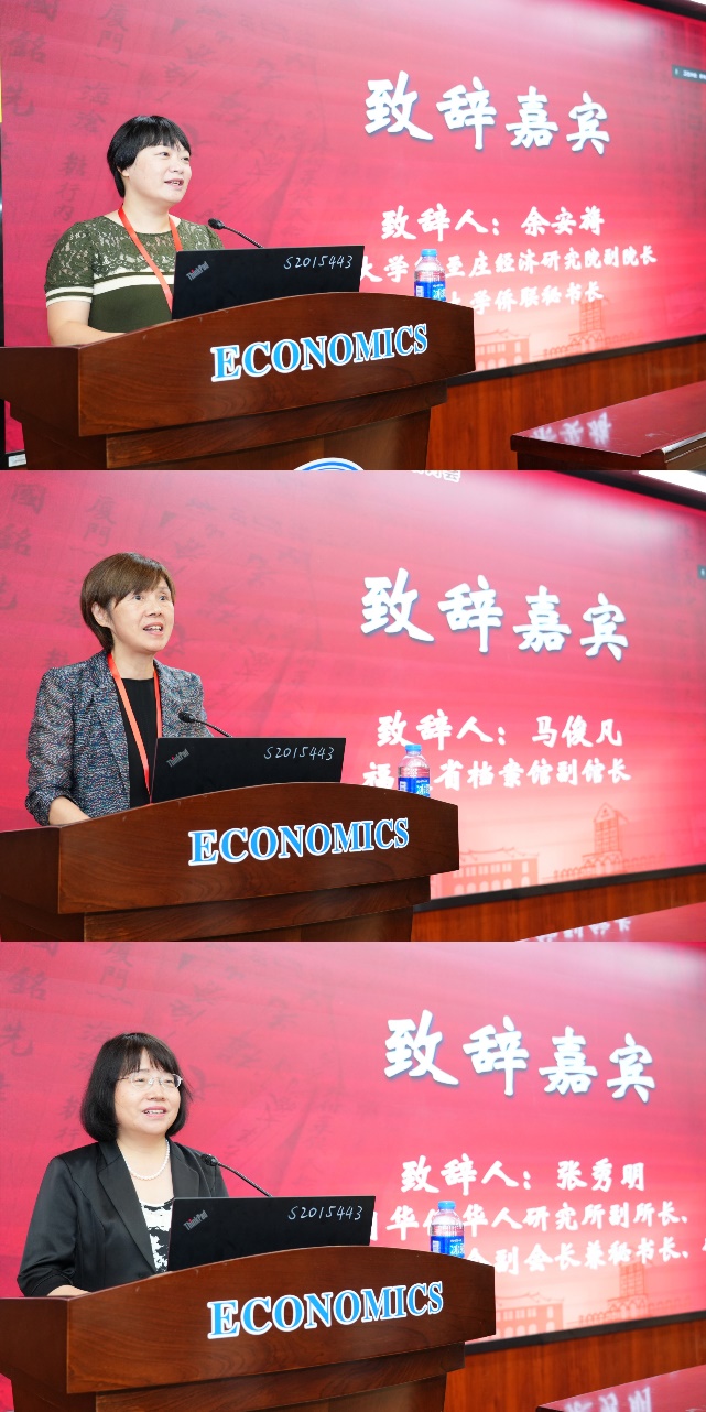 上午,开幕式由厦门大学经济学院经济学系副主任李嘉楠副教授主持,厦门大学邹至庄经济研究院副院长余安旖,福建省档案馆副馆长马俊凡,中国华侨华人研究所副所长张秀明分别致辞。