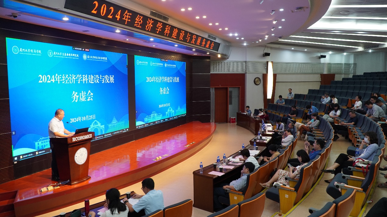 10月25日上午,2024年厦门大学经济学科建设与发展务虚会在厦大经济楼举行。会议旨在深刻反思学科发展中出现的问题,科学谋划2024年及今后学科发展方向和对策。经济学院、王亚南经济研究院、邹至庄经济研究院领导班子,系所中心负责人,教师代表,全体党政技术人员等与会。经济学院党委副书记陈泗林主持会议。经济学院、王亚南经济研究院院长周颖刚教授总体介绍厦大经济学科发展情况,重点分析了在学科建设步伐、顶尖研究成果、高层次人才等方面存在的问题,提出应顺应大势,明确战略方向,优化解决问题的策略;对内团结一心,对外加强交流与合作;应主动出击加强人才引育,特别是高端人才的引进和培养;要直面AI时代的机遇和挑战,从两个大局出发,围绕国家重大战略需求谋划工作重点。