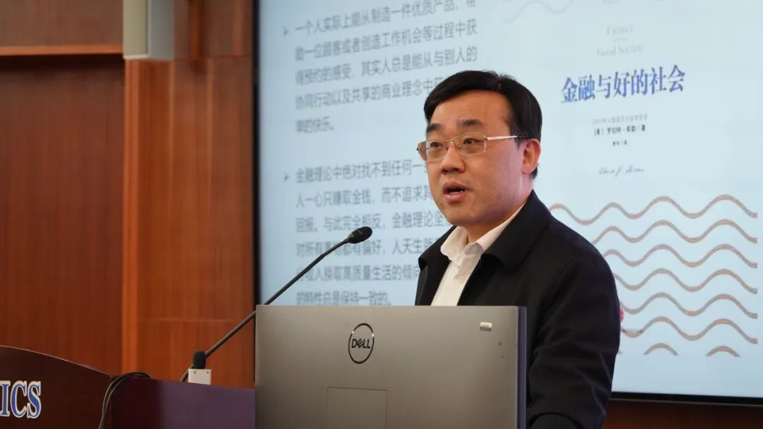 周颖刚教授分享的主题是“中国特色社会主义金融理论初探”。他从国际货币体系演变和西方金融理论的反思出发,提出了中国特色社会主义金融理论的初步框架。周颖刚认为,要坚持系统观念从政府、市场和社会三者的协同关系中理解金融的本质,从两个相结合理解“有爱社会人”的概念,提出“有为政府、有效市场和有爱社会”三位一体的理论框架。他以晋商的“共同体式身股激励”和F农商行的“山城办事员”为例,说明中国金融实践中“以义取利”和“社会嵌入”的特点。最后,他强调应以马克思主义金融理论和中华优秀传统文化为基础,以习近平经济思想为指引,构建新时代中国特色社会主义金融理论体系。