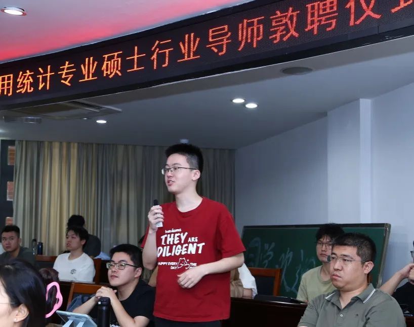 主旨演讲过后,会议进入圆桌论坛环节。围绕“应用统计专业硕士人才培养”,行业导师代表们从自身从业经历出发,针对行业对人才的需求等情况与现场师生进行交流,建议同学们提升内驱力与主动性,把握向上生长的机会,在未来多尝试不同的工作岗位,找到适合自己的工作方式。圆桌论坛由经济学院统计学与数据科学系副主任李木易教授主持。