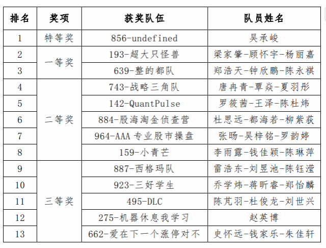 本届竞赛自今年3月启动报名以来,吸引了全国多所高校共163支队伍参赛。经过为期近两月的线上初赛选拔,来自10所高校的13支优秀团队最终入围决赛,参加现场答辩。比赛中,选手们围绕股票交易场景,基于 A 股真实市场的高频数据,鼓励参赛者通过数据分析和统计建模理解市场微观结构,发掘有效信息,预测行情走势并在真实市场中进行验证。鼓励参赛者使用大数据分析、统计分析、机器学习、深度学习、强化学习等方法,探索相关技术在金融市场实践中的应用。