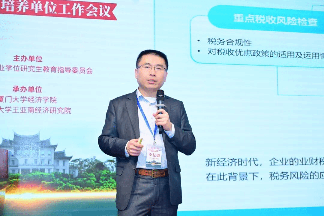 方颖在致辞中介绍了厦门大学及其财政学科历史渊源,并介绍了近年来厦大在构建财政和税收学科体系、人才培养体系方面的特色和成效,特别是通过“数字化+专业化”课程、校企实习基地、税务精英挑战赛及“双师型”师资建设,构建了三位一体税务专硕培养体系。方颖表示,此次会议以“数字化背景下高层次实践创新型税务人才培养”为主题,契合了“金税四期”的推进及“以数治税”发展需求。厦大也将以承办此次会议为契机,进一步支持教指委和秘书处工作,并与各培养单位携手培育国家急需税务人才,助力经济高质量发展。