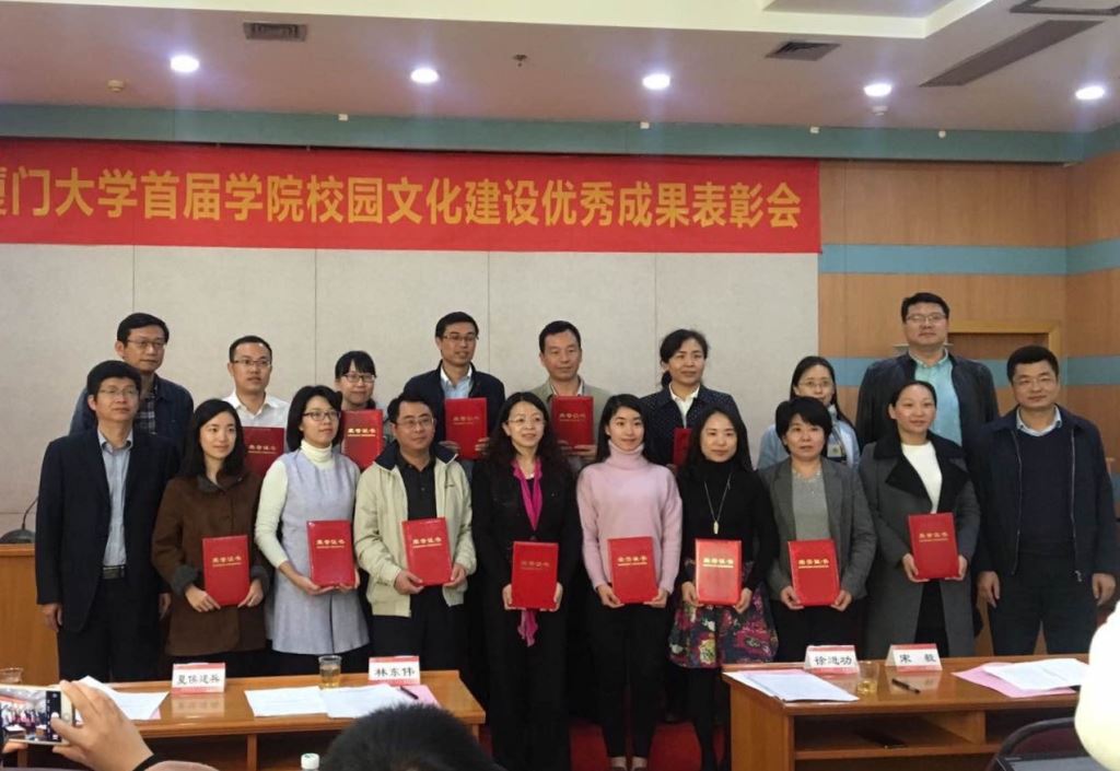 1月11日下午,厦门大学首届学院校园文化建设优秀成果表彰会在颂恩楼220顺利举行,校党委副书记林东伟、校党委宣传部部长徐进功、学生工作部部长夏侯建兵、校团委书记陈怀锋等出席了表彰大会。经济学科两项成果《经鹰...