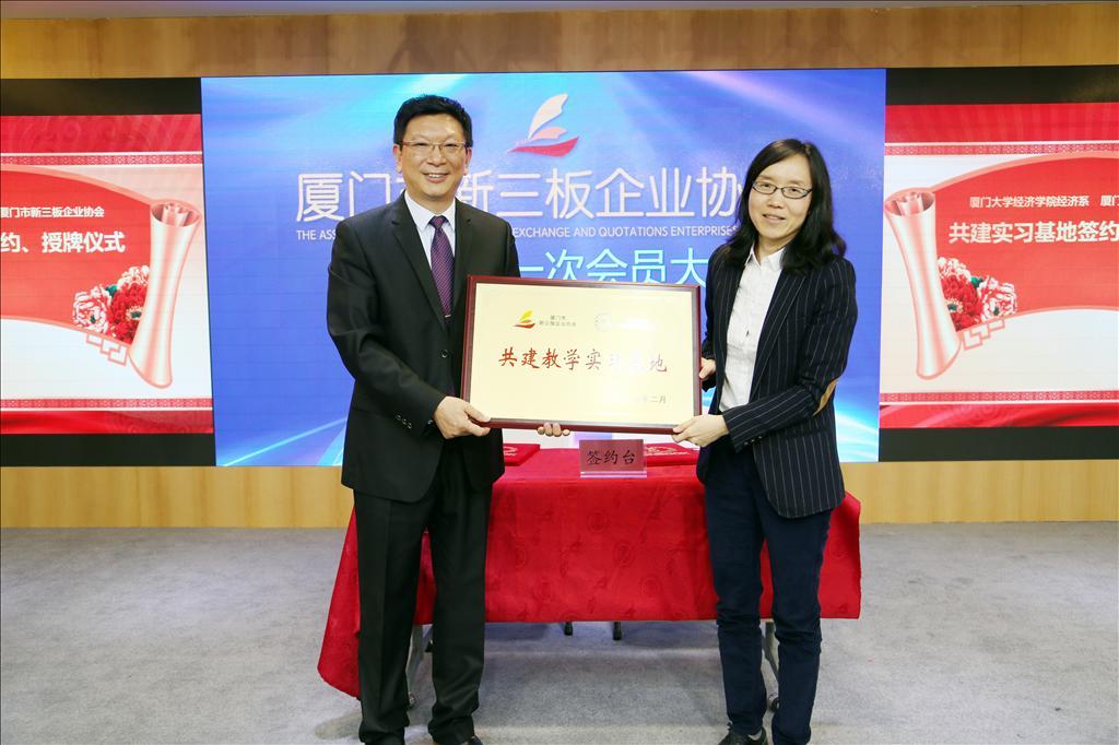2月18日下午,厦门大学经济学院经济学系与厦门市新三板企业协会正式签署共建教学实习基地协议,并举行了授牌仪式。厦门大学经济学院副院长朱孟楠教授、经济学系主任龙小宁教授出席参加了签约仪式。 当天下...