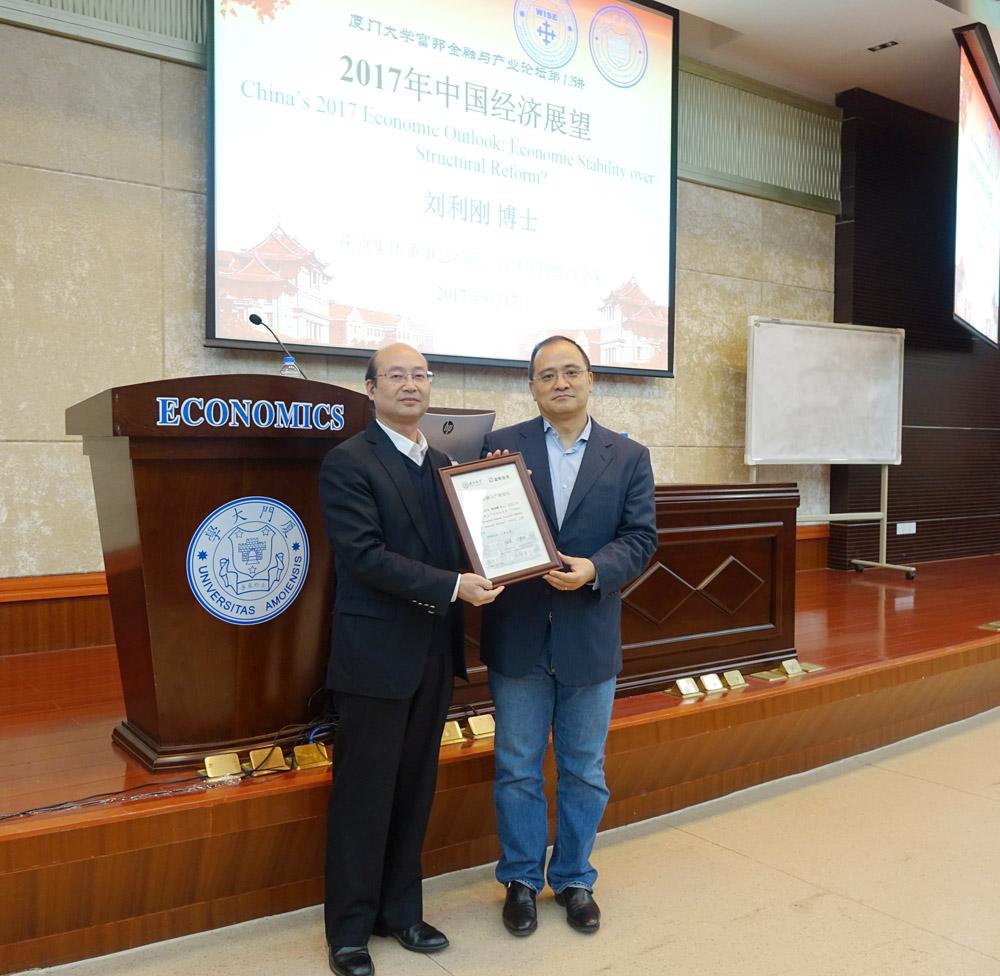 3月17日,花旗首席中国经济学家刘利刚博士到访经济学科,为两院师生做了一场题为“2017年中国经济展望”的学术讲座。讲座由周颖刚教授主持,朱孟楠教授向刘利刚博士颁发富邦金融与产业论坛讲座纪念牌。  ...