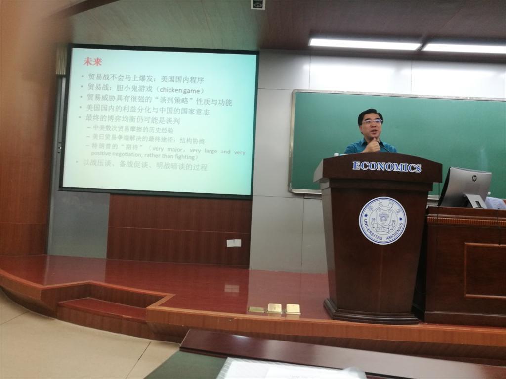 4月20日下午,国际经贸名人论坛179讲在经济楼N302开讲。南开大学“杰出教授”、南开大学经济学院院长盛斌教授应邀做了题为“中美贸易的战与和”的学术报告。论坛由国际经济与贸易系主任彭水军教授主持,众多经济学院...