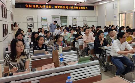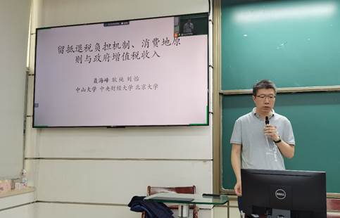 4月20日下午,由厦门大学经济学院财政系主办的“财税名家论坛第八十一讲”学术讲座在经济楼顺利举行。中山大学岭南学院经济学系聂海峰副教授应邀做了题为“留抵退税负担机制、消费地原则与政府增值税收入”的学术报告。讲座由谢贞发教授主持。该讲座采取线下和线上相结合的方式,除了现场几十名师生线下参加外,还有1000多人观看了厦门大学经济学院视频号的讲座直播。