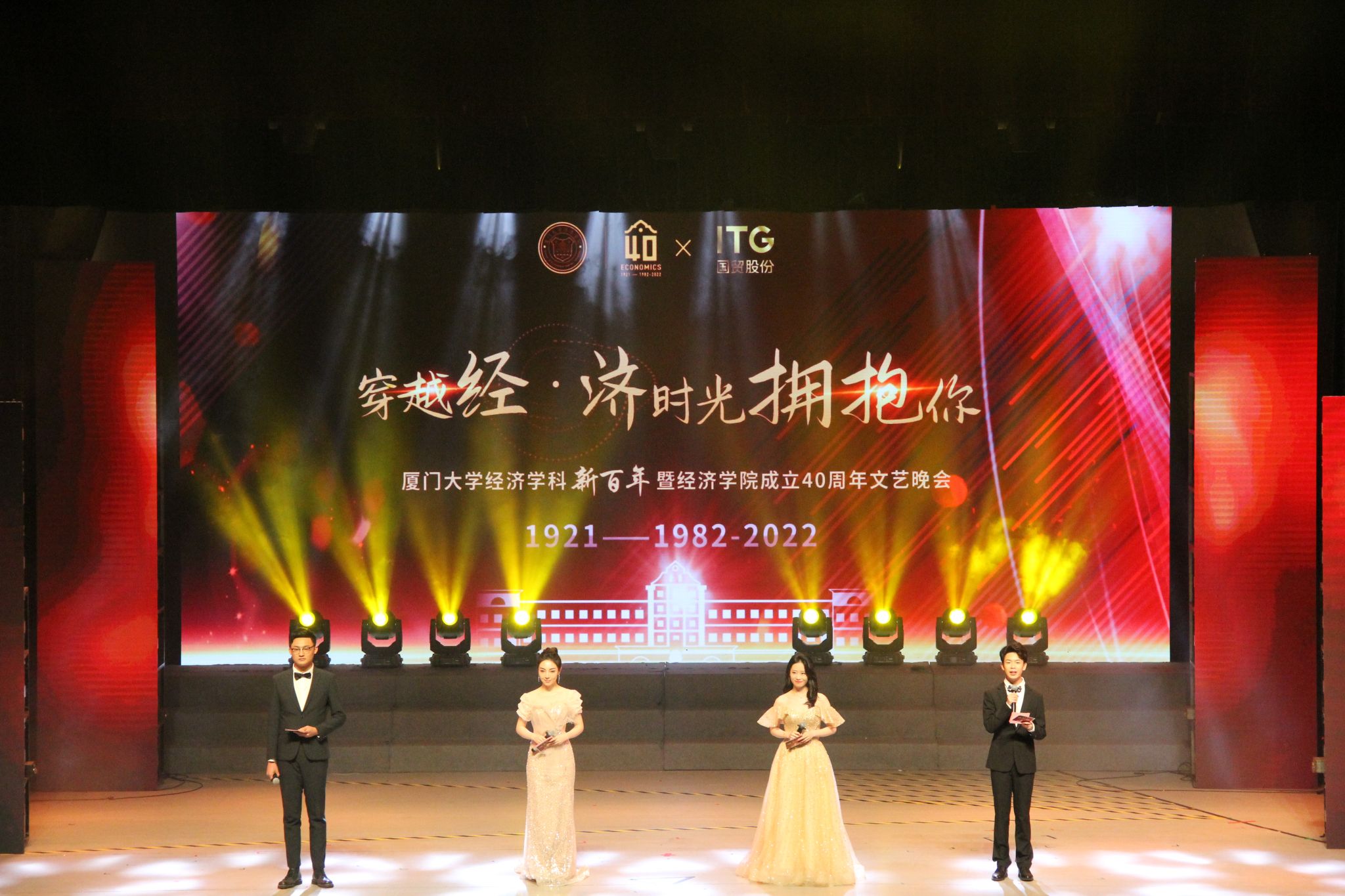 3月19日晚,“穿越经•济时光拥抱你”厦门大学经济学科新百年暨经济学院成立40周年文艺晚会在我校建南大会堂隆重举行。万簇灯火中,经济学科师生、院友相聚一堂,共同见证学科百年奋斗史、建院40周年光辉路,用深情唱响芙蓉湖畔,共赴光明未来。