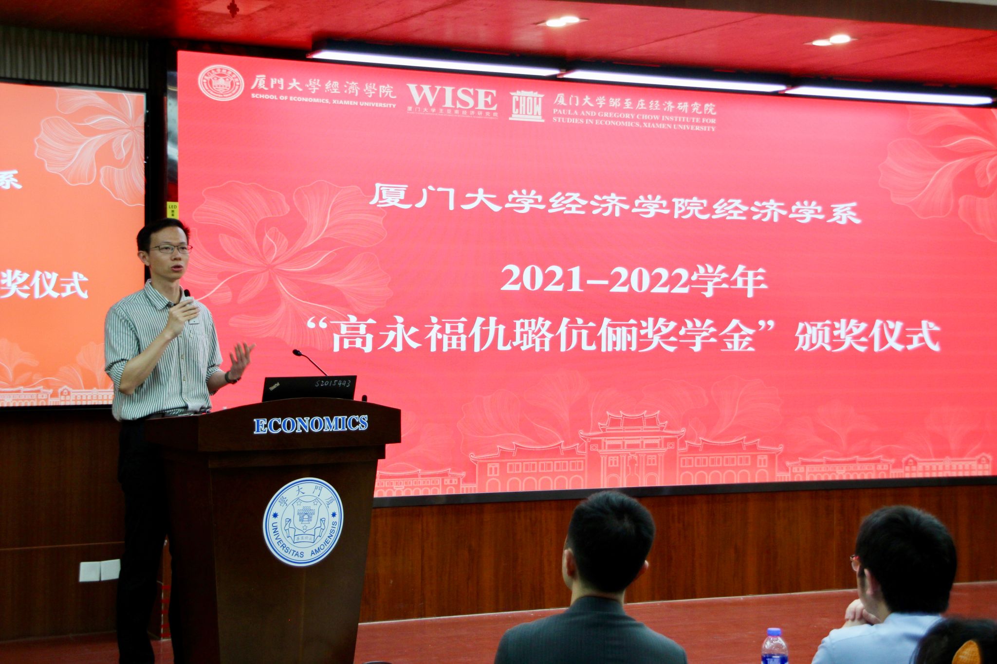 3月24日,厦门大学经济学院经济学系首届“高永福仇璐伉俪奖教奖学金”颁奖仪式在经济学院举行。颁奖仪式由经济学系许梦涵副教授主持,经济学院党委副书记杜海林、经济学院副院长谢贞发教授、经济学系主任张兴祥教授、经济学系副主任李嘉楠副教授、经济学系工会主席张晶教授、经济学系杨子砚副教授、经济学院团委书记吴光锡参与颁奖仪式。
