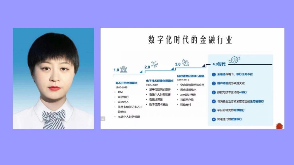 严佳佳教授首先详细介绍了数字化时代下金融行业的阶段性发展,从1.0时代离不开的物理网点到4.0时代无处不在的银行。调研发现,2021年超90%的银行已经开展数字化转型且规模较大,但目前还没有银行能够进入成熟的阶段,还没有银行实现全面数字化,因此发展空间巨大。随后,她分析了银行业和保险业数字化转型的监管部门设计,在战略规划和与流程建设上有四点构成,一是科学制定实施数字化转型战略,二是改善组织架构和机制流程,三是统筹推进数字化转型工作,四是大力引进和培养数字化人才。严佳佳教授还从业务、数据、组织和技术四个角度分析了金融机构数字化转型的驱动因素。