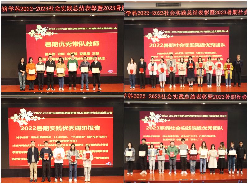 随后,吴光锡老师宣读了2022-2023年社会实践表彰决定,表彰寒暑期社会实践优秀带队老师、优秀团队和优秀调研报告。周蕾老师、杜海林老师、吴光锡老师,王华老师分别为实践优秀个人和团队进行了颁奖。