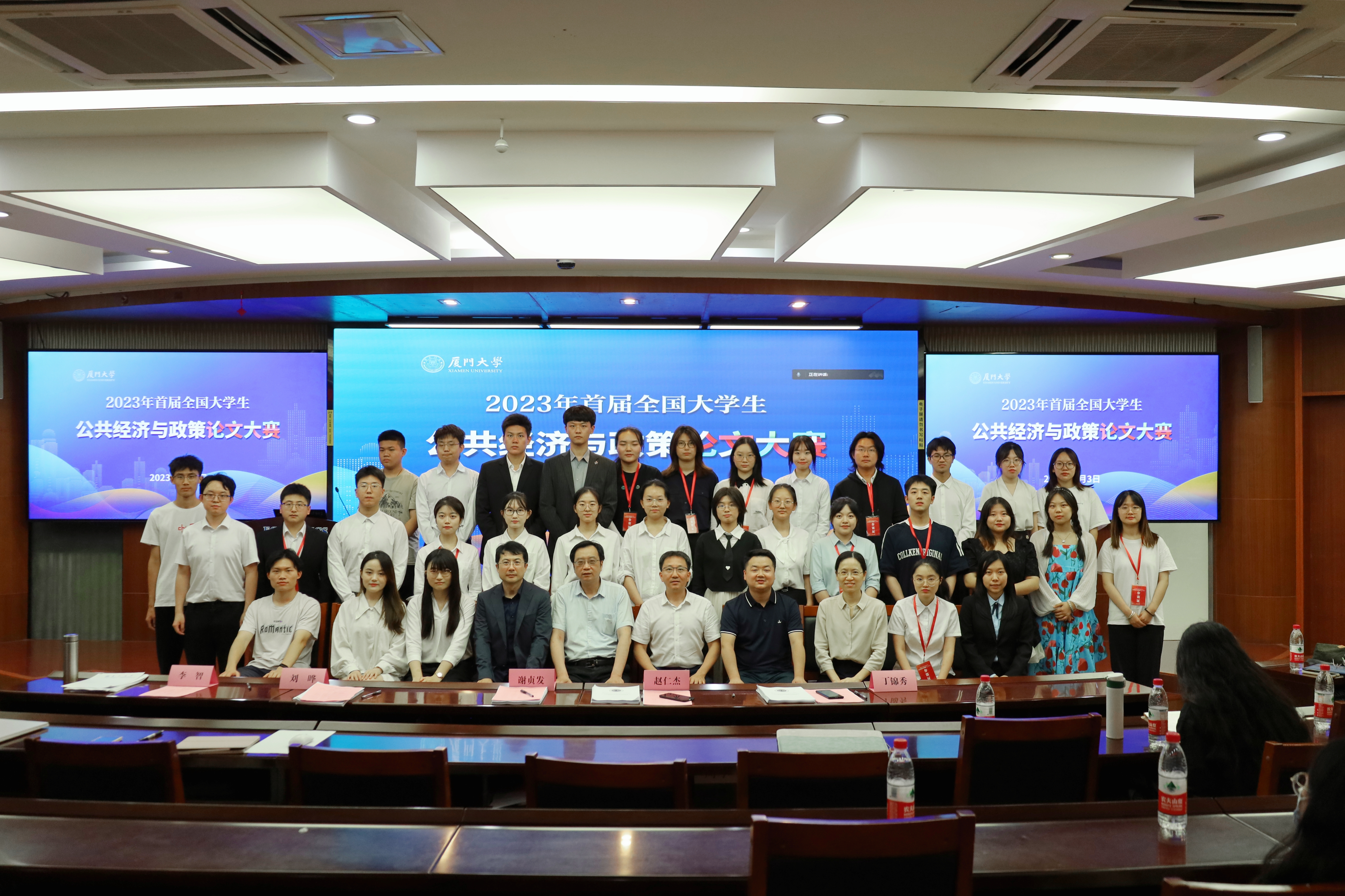 首届全国大学生公共经济与政策论文大赛决赛于2023年6月3日在厦门大学经济楼成功举行。自2023年3月份启动报名以来,共有来自全国88所高校的502支参赛队伍报名,初赛阶段共收到289篇论文。经过激烈的角逐,最终来自20所高校的36篇论文进入决赛。决赛设置了开幕式、分组决赛答辩、总决赛答辩、主题演讲和颁奖典礼环节。大赛由厦门大学主办,厦门大学教务处、经济学院、王亚南经济研究院承办,北京大学经济学院、山东大学经济学院、上海财经大学公共经济与管理学院、中国人民大学财政金融学院协办,厦门国际银行赞助支持。