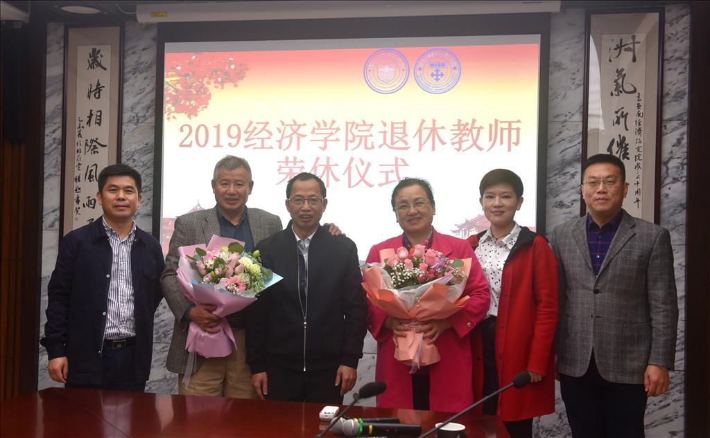 12月31日下午,2019经济学院退休教师荣休仪式在厦大经济楼N501举行。本年度荣休的有吴丽华、郑甘澍、苏丽萍和李玲玲四位老师。吴丽华老师与郑甘澍老师作为退休教师代表参加了本次荣休仪式。经济学院党委书记黄鸿德,金融系系主任郭晔,国贸系系主任彭水军、经济学院工会主席蔡伟毅参加荣休仪式并发言。