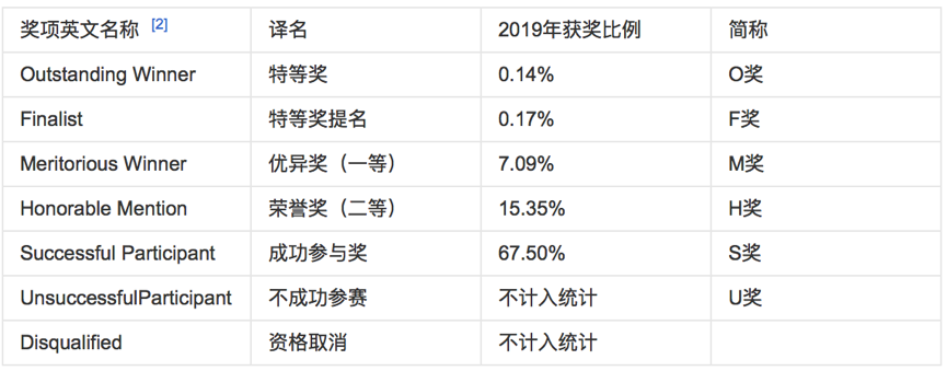 美国大学生数学建模竞赛由美国数学及其应用联合会主办,是唯一的国际性数学建模竞赛,也是世界范围内最具影响力的数学建模竞赛。本次大赛赛题内容涉及经济、管理、环境、资源、生态、医学、安全、等众多领域。竞赛要求三人为一组,在四天时间内,就指定的问题完成从建立模型、求解、验证到论文撰写的全部工作,体现参赛选手研究问题、解决方案的能力及团队合作精神。该大赛奖项设置及获奖比例如下: