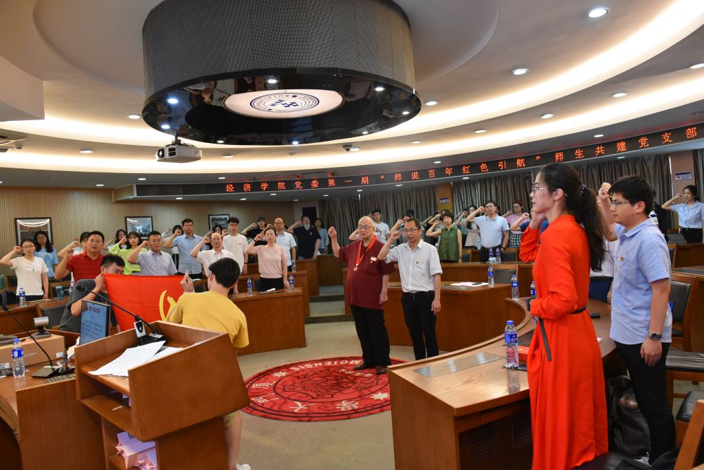 最后,在张亦春教授和黄鸿德的带领下,全体党员在党旗下庄严举起右拳,一同重温入党誓词。