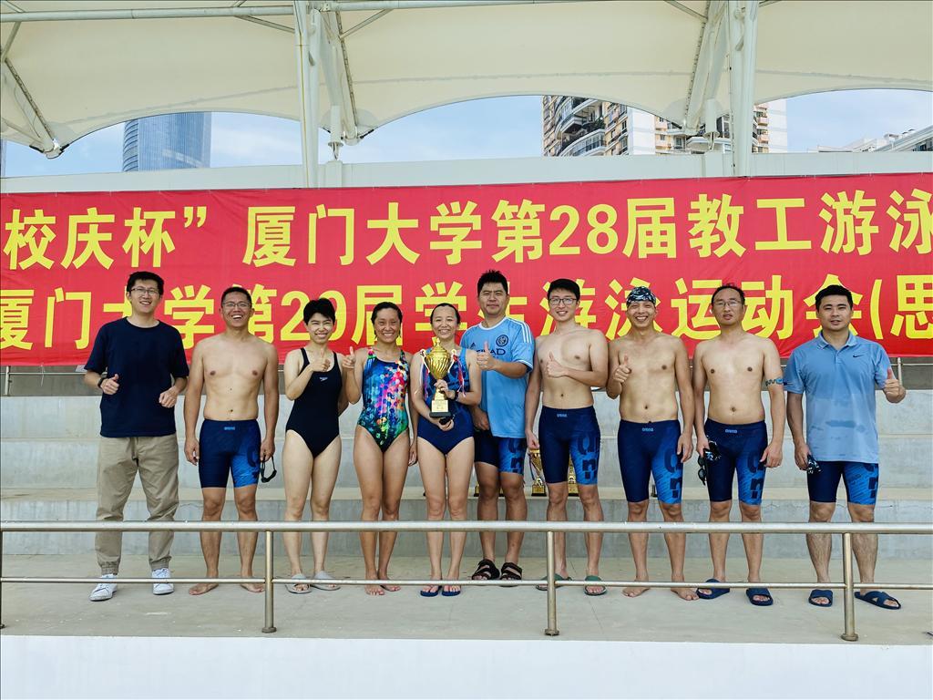 今年是中国共产党建党一百周年,厦门大学建校一百周年,经济学科教工游泳队继承和弘扬党的光荣传统和优良作风,秉承“自强不息,止于至善”的校训,取得历史性的突破,获得教工团体总分第一的好成绩。