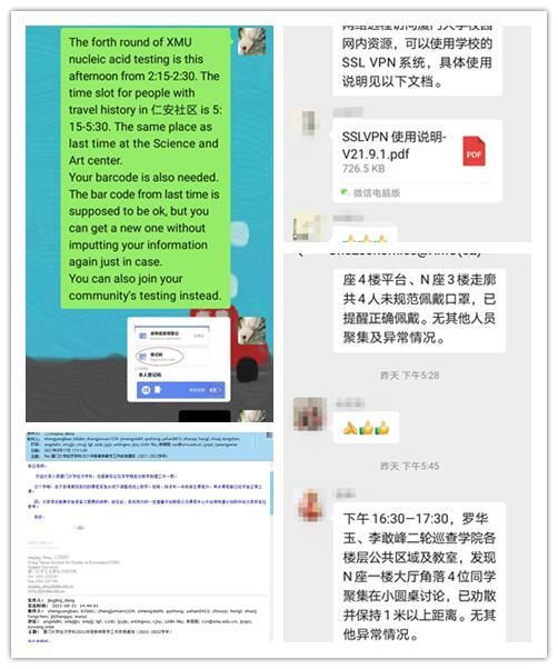 根据学校统一安排,组建“思明校区学生社区疫情防控楼栋工作组”,由辅导员驻楼开展疫情防控相关工作。经济学院9名辅导员在学院党委副书记周蕾老师、杜海林老师的带领下,进驻芙蓉二、芙蓉五、海韵十五等9栋学生宿舍,辐射学生共3250名。通过专题工作布置、学生宿舍走访、慰问等方式,将学校最新的疫情防控政策有效地传递给本楼栋的学生。逐步成立楼栋临时党支部,以党建引领工作,将疫情期间的关心关爱传递到每一位学生身上。
