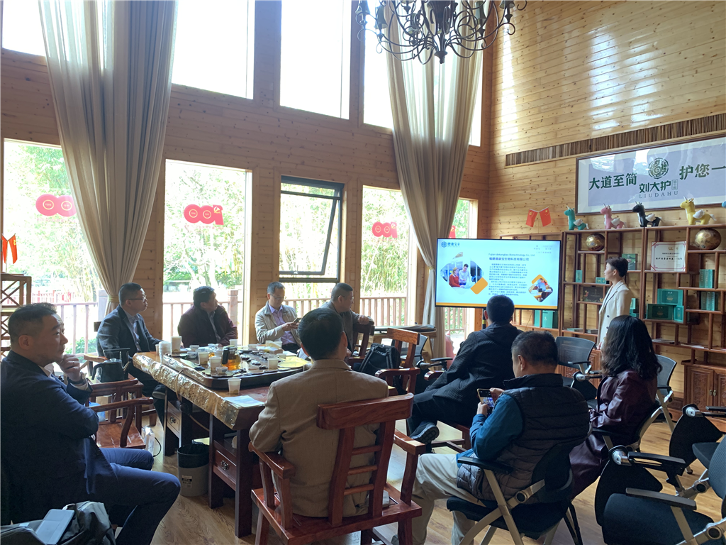 交流会活动安排丰满、紧凑。同学们首先走访了杨范斌同学的福建德康宝生物科技有限公司。福建德康宝生物科技有限公司是一家专业从事“蜗牛酶”生物科技相关产品的研发、生产和销售的综合性公司,是行业内最早从事此领域的企业之一。现阶段公司已与多家企业进行深度合作,联合研发蜗牛酶在医疗大健康领域的进阶应用。公司于2020年与“中关村智康e院”达成战略合作伙伴关系,携手进军大健康产业,将在全国建设“中关村智康e院”社区服务点、高端健康管理服务旗舰服务点带动公司健康产业发展。大家相互交流、学习,汲取优秀的企业经营之道。