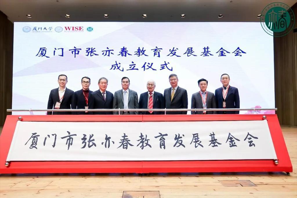 厦门市张亦春教育发展基金会成立仪式由厦门大学特聘教授、继续教育学院院长朱孟楠主持,中国金融学科终身成就奖、厦门大学南强杰出贡献奖获得者张亦春教授,中国银行原行长李礼辉 ,厦门大学党委常委、副校长杨斌教授 ,厦门市教育发展基金会理事长潘世建,通联支付董事长万建华, 旭辉集团总裁林峰,福信集团董事邱国龙 ,敬微精密董事长张延平共同推动拉杆,印有李礼辉先生亲笔题写的“厦门市张亦春教育发展基金会”字样卷轴徐徐展开,主持人宣布,厦门市张亦春教育发展基金会正式成立。