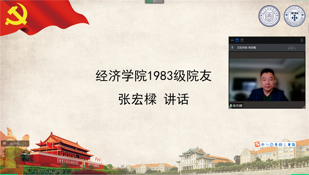 本次座谈会由经院学院党委主办,《资本论》研习社、马克思主义政治经济学学习社承办,以线上线下相结合的方式举办。经济学院1983级院友张宏樑,经济学院党委书记黄鸿德,副书记杜海林,经济系教授杨继国,副教授李嘉楠,团委副书记王华,辅导员徐惠聪、刘长青,博士生代表苏才立,研究生代表、马克思政治经济学学习社成员黎子超,本科生代表、《资本论》研习社成员牛嘉仪及学生代表参会。