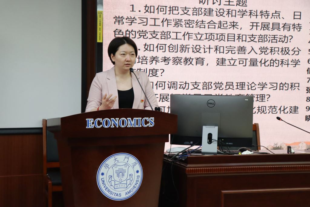 为进一步推进新时代高校党建示范创建和质量创优,提高学生党支部书记和支委的理论素养和党务工作能力,5月27日下午,经济学院党委党校以“练好党务基本功 夯实根基筑堡垒”为主题,在经济楼N303举办第一期学生党务骨干沙龙,邀请 3位学生党支部书记分享支部工作经验,组织交流研讨。校基层党建联络员郑保东,经济学院党委副书记杜海林,辅导员代表蔡庆淞以及学院各学生党支部书记、支部委员参加了沙龙活动。本次沙龙由经济学院党委组织员陈秋虹主持。