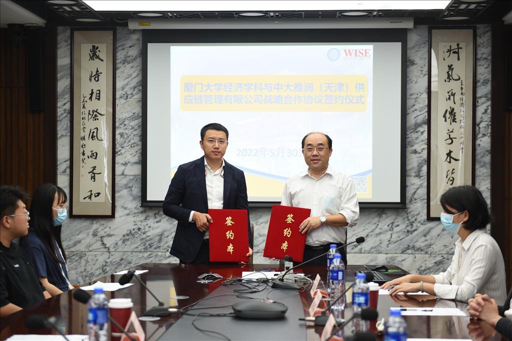 交流会上,中大雅润(天津)供应链管理有限公司董事长、2008级院友周厦与经济学院、王亚南经济研究院副院长(主持工作)周颖刚教授签署了双方战略合作协议。