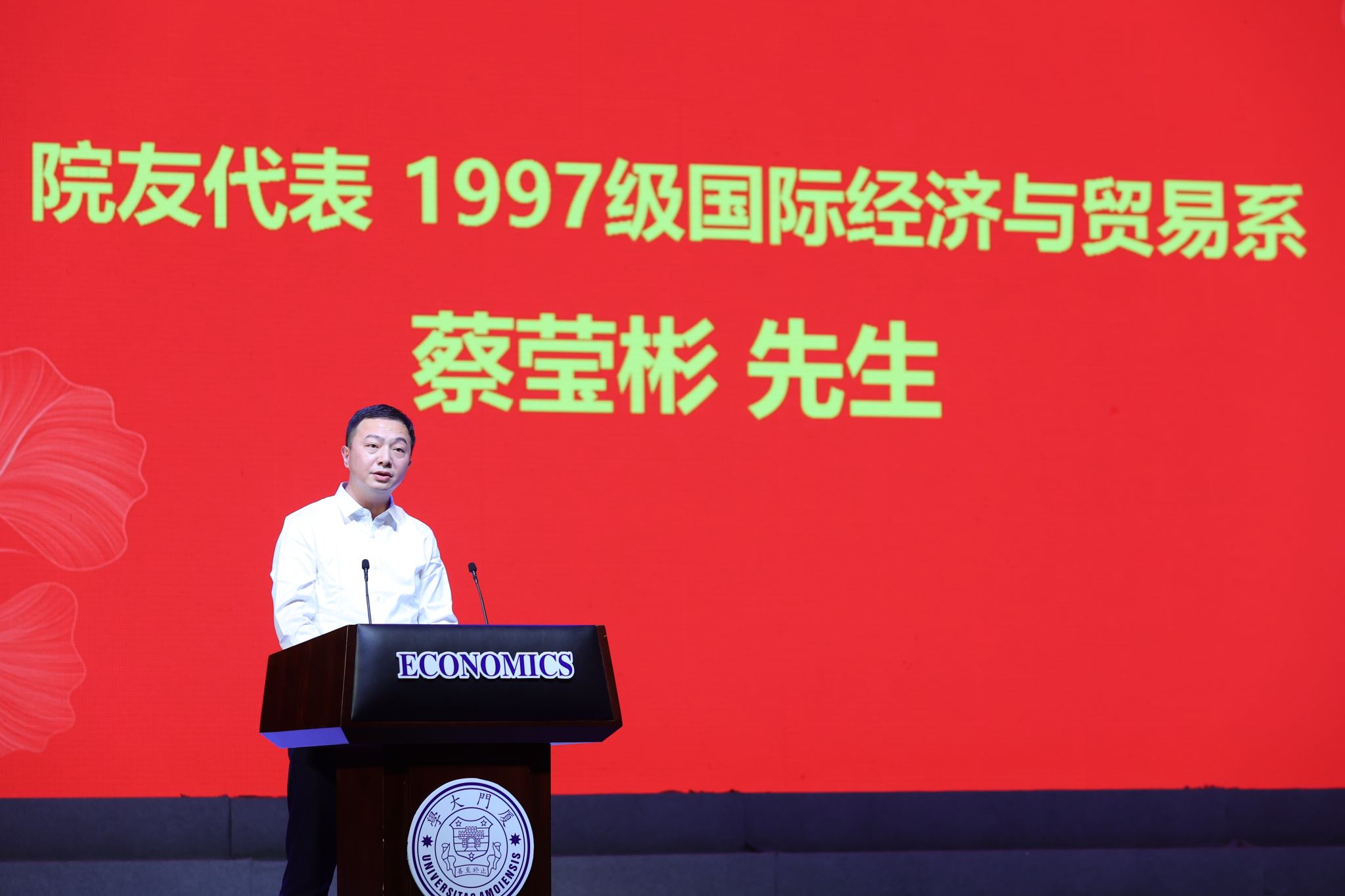 1997级院友、厦门国贸集团股份有限公司党委委员、常务副总裁蔡莹彬分享了他在厦园度过的岁月,他表示自己最难忘的第一件事是沉浸在厦大读书的世界里、感受前人智慧的凝结、在知识的海洋里遨游;第二件事是在厦大里面和形形色色的人进行交流,体会人与人之间的情感和温暖。蔡莹彬先生表示毕业代表着新的起点,也对毕业生们提出了三点希望:第一,具备理性思维,保持独立思考;第二,具备长远眼光,积极拥抱世界;第三,具备坚定信心,在平凡中踏实前行。