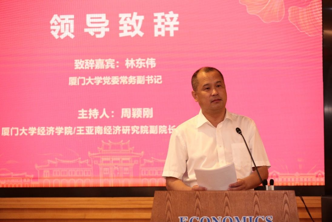 林东伟副书记代表厦门大学对宁吉喆主任一行来访表示欢迎,并介绍了厦门大学和厦大经济学科的历史沿革与发展现状。他谈到,百余年来,一代代厦大人在陈嘉庚先生爱国精神感召下与党同心,与国同行,今后厦门大学将坚持以习近平总书记致厦门大学建校100周年的贺信精神领航,大力弘扬嘉庚精神,与时俱进建设中国特色世界一流大学。他表示,作为厦门大学最重要的优势学科与支柱学科之一,厦大经济学科历史悠久,在教学育人、科研促教、服务社会方面成果丰硕,今后经济学科将继续把服务国家和地方重大发展战略作为使命与担当。