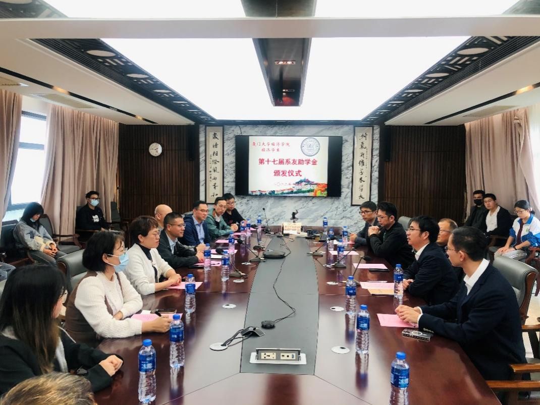 12月1日中午,经济学院在经济楼N501举行福建省首个数字人民币助学金——经济学系第十七届系友助学金颁发仪式。经济学院党委副书记杜海林,经济学系系主任张兴祥,经济学系系副主任李嘉楠,经济学系系主任助理许梦涵,1992级班主任郭其友,系友代表连任、张云龙、邱鹭、朱艺楚、陈淑卿、谢荣华、许限柏出席本次颁发仪式。仪式由经济学院辅导员蔡庆淞主持。