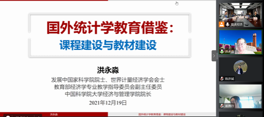 中国科学院大学经济与管理学院、厦门大学邹至庄经济研究院教授,院长洪永淼的分享主题为《国外统计学教育借鉴:课程建设与教材建设》,洪永淼教授表明中国统计学的课程设置和教材建设在立足本土实际的同时,也应当批判性地借鉴发达国家。洪永淼教授主要分享了杜克、斯坦福、康奈尔三所大学的统计学课程设置,包括学位设立、核心课程和选修课程三个方面。他表示,国外统计学专业课程设置的特色主要包括选修课涉猎广泛;不要求专业论文;所有专业课程重视基础、计算、应用、前沿和交叉。最后,他针对教材建设给出了五大建议:多层次、成体系;创一流品牌、出精品教材;落实课程思政,坚持教材育人;借鉴全球智慧,推动中国统计学发展;用世界语言讲述中国统计故事。